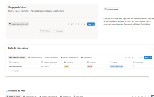 Ideias, referências, conteúdos e planejamentos em um calendário visual