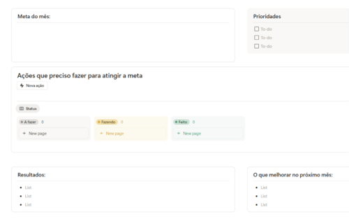 Um espaço para anotar metas, objetivos e ver seus resultados mês a mês.