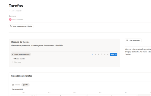 A forma como você organiza sua rotina influencia no seu crescimento. É por isso que criei a Central Criativa, um sistema no Notion que reúne tudo o que um estúdio de design precisa para funcionar com clareza.